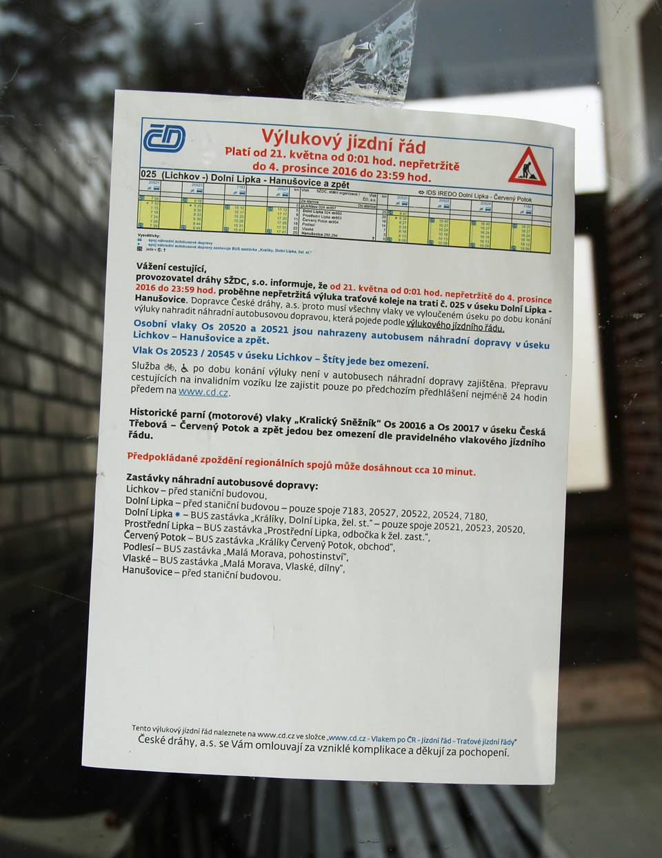 |  | | Po obnovení provozu a rekonstrukci dráhy v roce 2014 je ve stanici mírně přeznačkováno. |