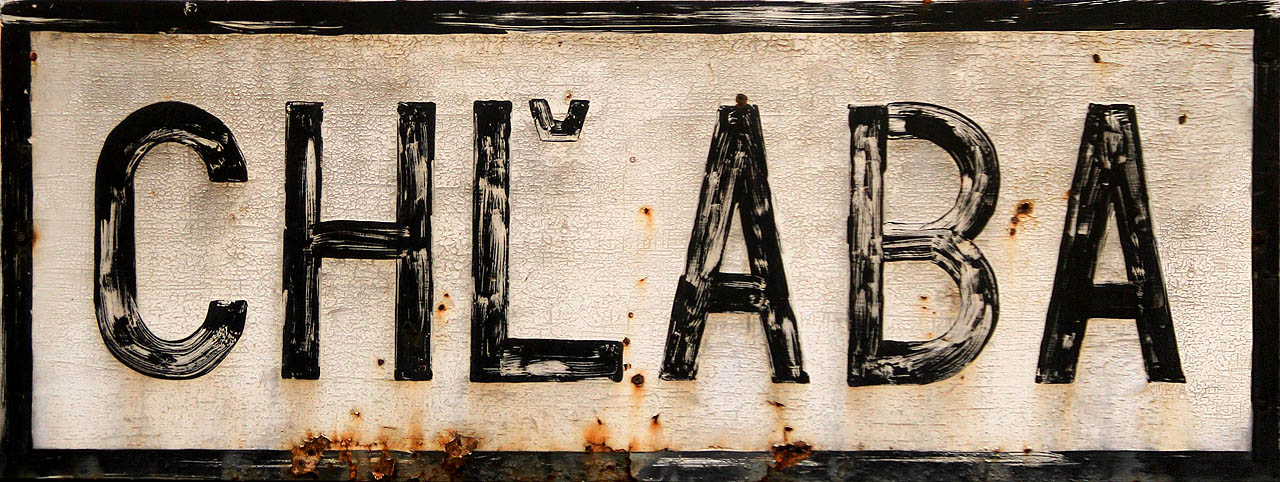 Přestože technicky je zastávka Chľaba zrušená, na místě se stále nachází identifikační cedulka ŽSR.