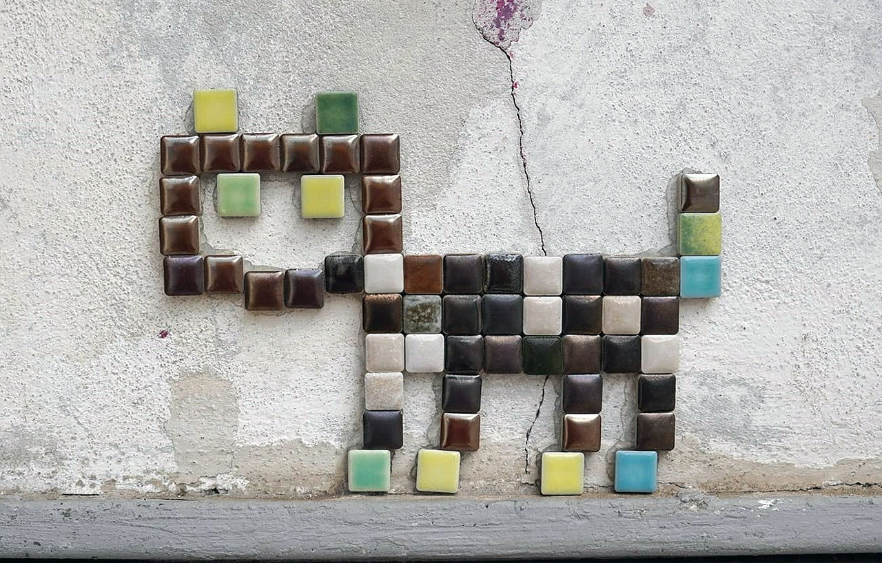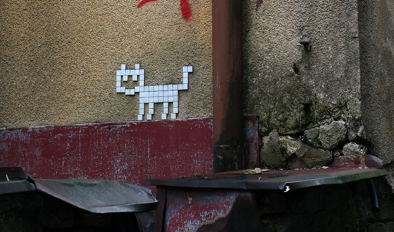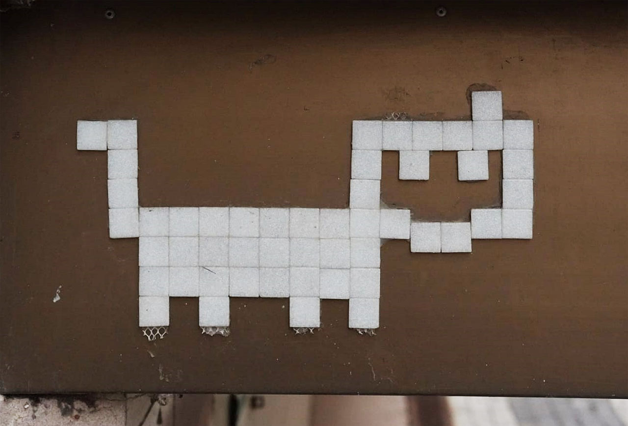 Kočky mají několik let i vlastní web, na který vás může dovést mj. QR v mozaikovém provedení v bezejmenné kanálové uličce v centru města. A nebo taky tento odkaz: mozaikovekocky.cz.