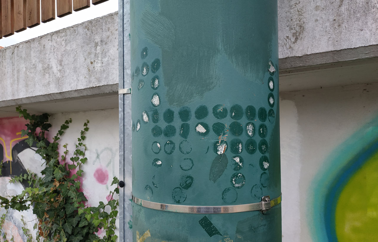 | Billboardová žlutá kočka pod Letnou | Jasně žlutá kočka obtuluje masivní podstavec reklamního poutače v nejnižší části ulice Letné. Možná se bojí přeběhnout přes rušnou ulici, po které proudí tisíce aut každý den. | 3. 8. 2023 JzA |