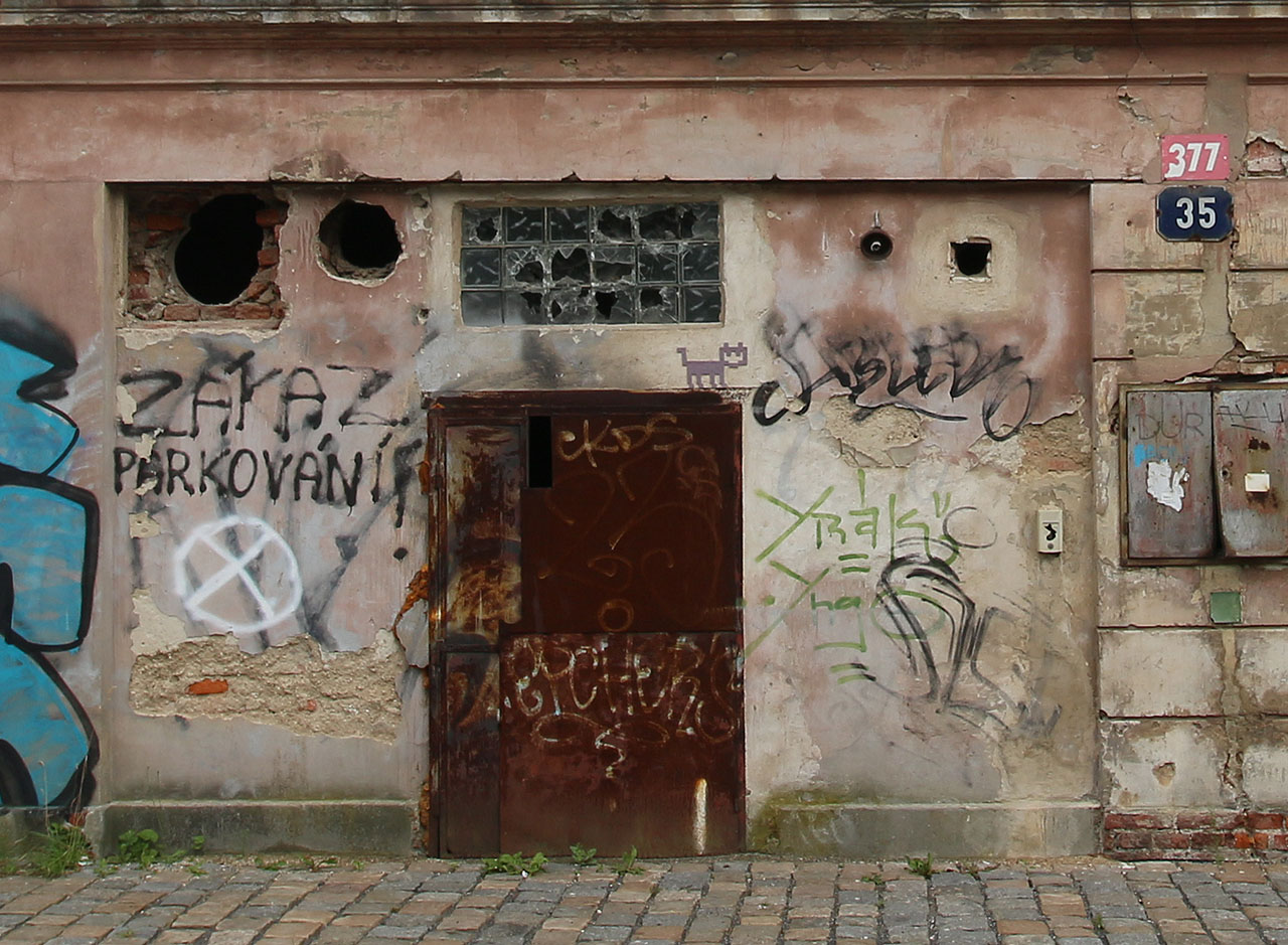 | Šedá kočka na Papírovém náměstí | Nenápadně šedivá kočka nade dveřmi do opuštěného domu je sice na Lucemburské ulici, ale stejně je to spíš Papírové náměstí. | 25. 7. 2023 JzA |