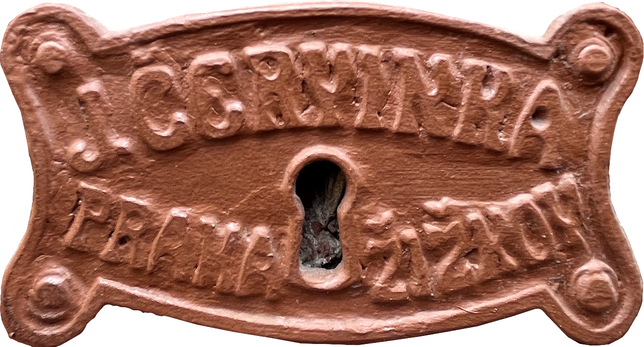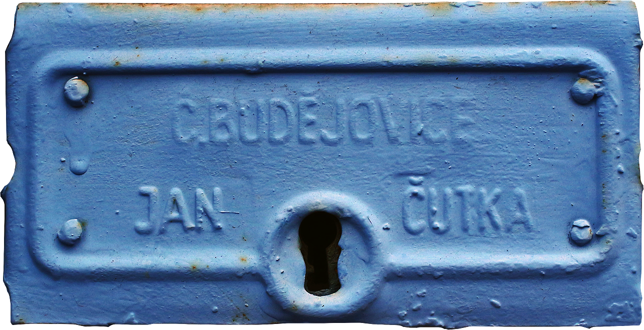Jan Čutka z Českých Budějovic používal jak litinové odlévané štítky, tak štítky pouze vyražené z plechu se zvlneným okrajem, který dobře zapadl do vlnovky na roletě.