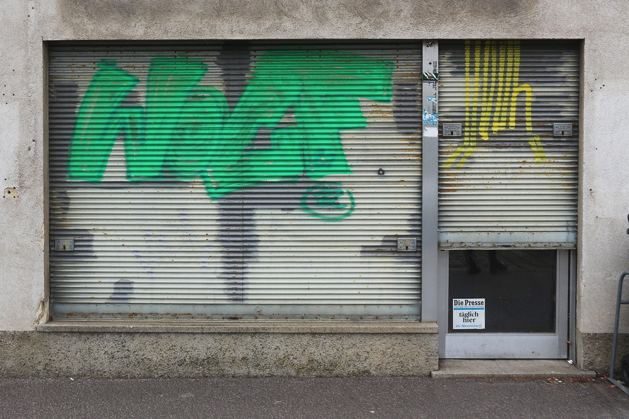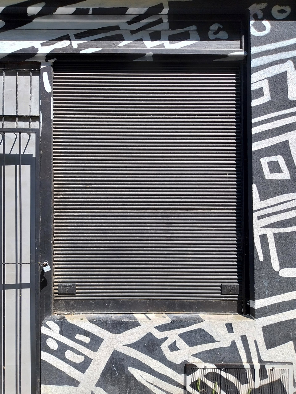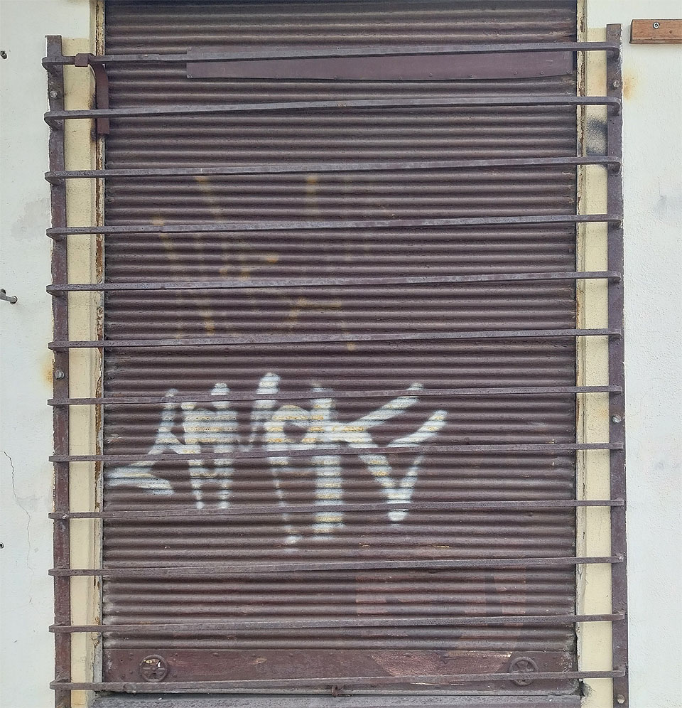 Dvojroleta na obchodě Táborská 88Roleta na okně a dveřích obchodu, který kdysi prodával náhradní díly na ruská auta značky Lada, trpí pod útoky vandalů.28. 6. 2024