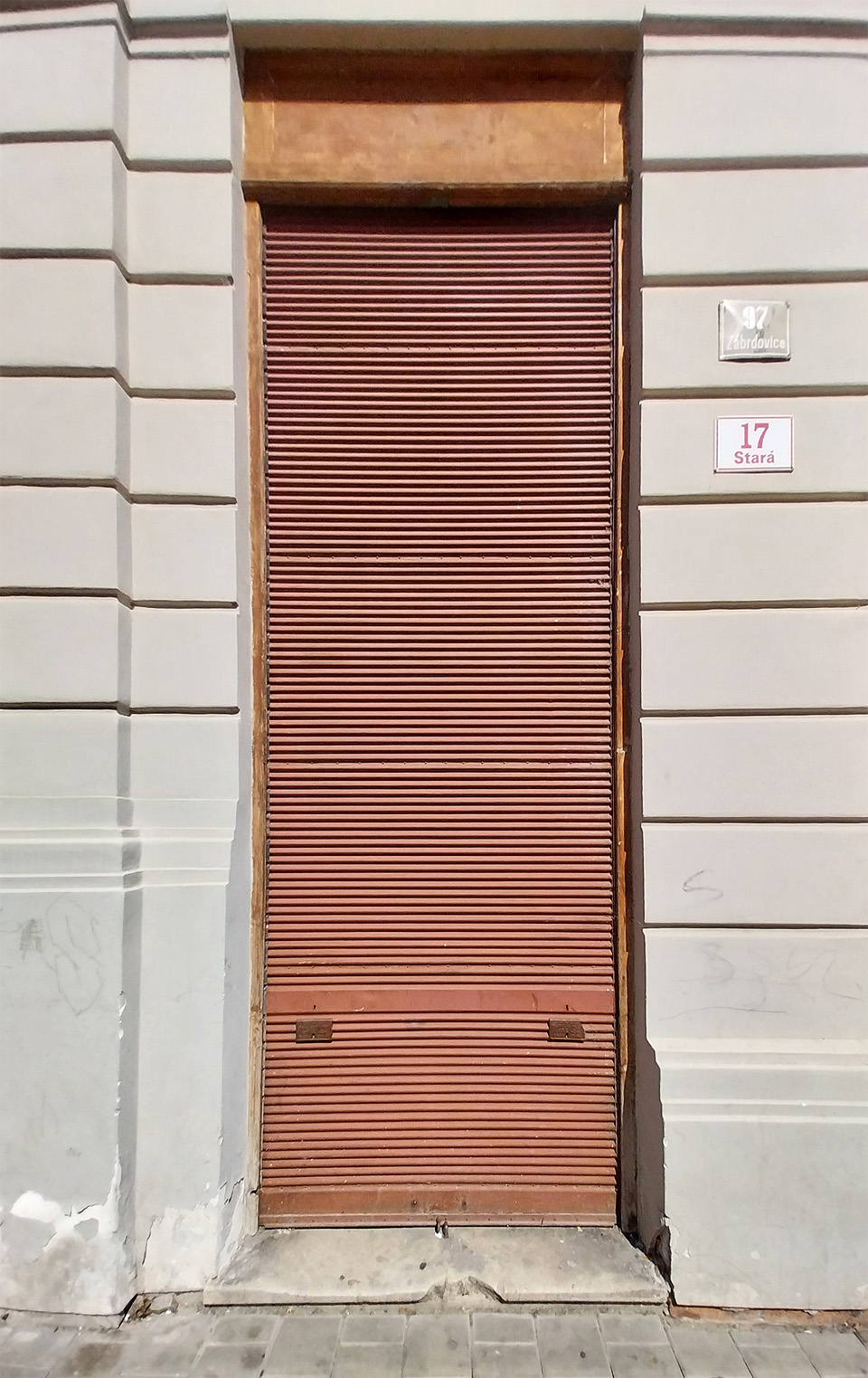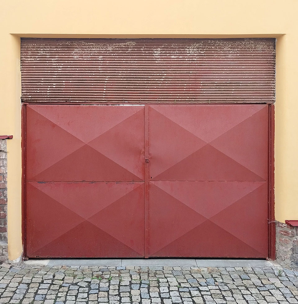 Garážová roleta na Volfově 8 v BrněGarážová roleta je posledním Mohykánem z celkem pravděpodobně šesti rolet na symetrických řadových domcích ve Volfově ulici. Ostatní garáže již kryjí moderní rolety z plastu.15. 1. 2025