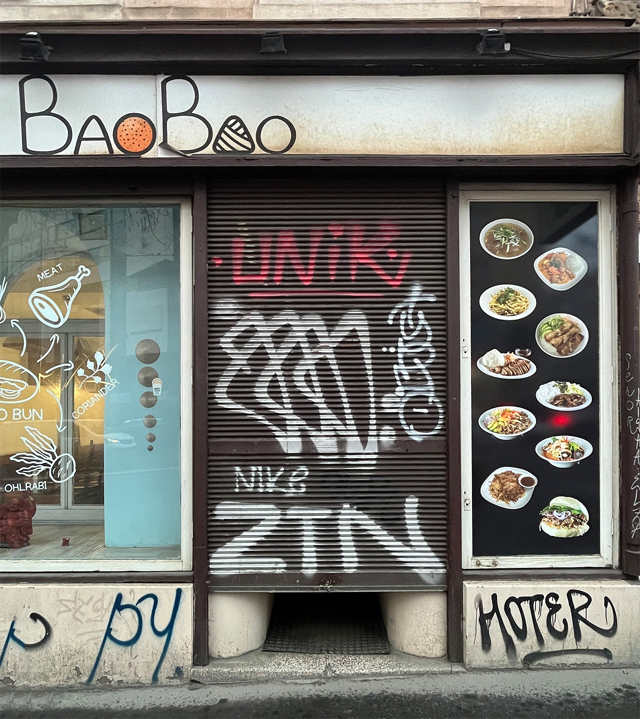 Jeruzalémské rolety č. 8 v PrazeDvojroleta ve výkladní skříni a vstupních dveřích do obchůdku na Jeruzalémské č. 8 v Praze strádá častými útoky vandalů.28. 1. 2025