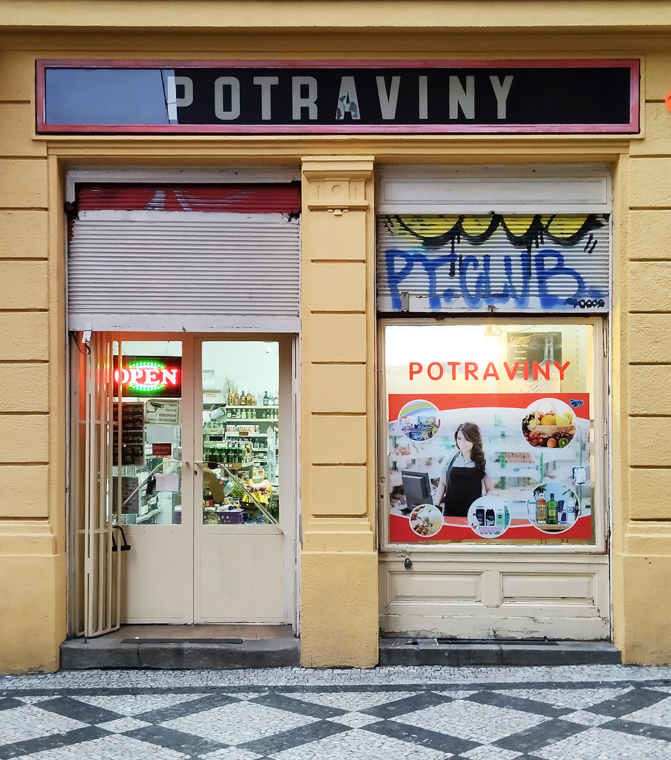 Jeruzalémské rolety č. 9 v PrazeV pražském roletovém epicentru v Jeruzalémské ulici č. 9 kryje dvojice rolet také vstup i výlohu prodejny potravin.28. 1. 2025