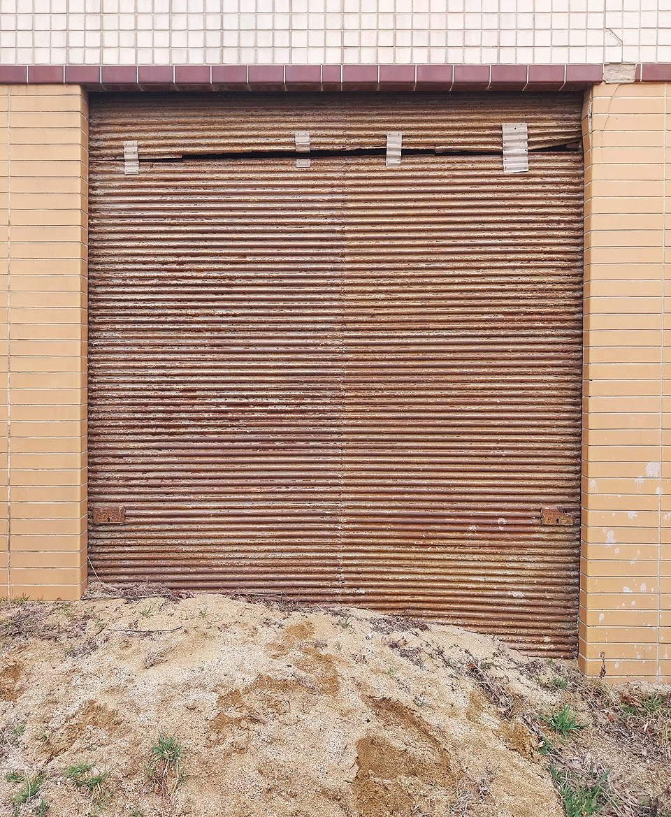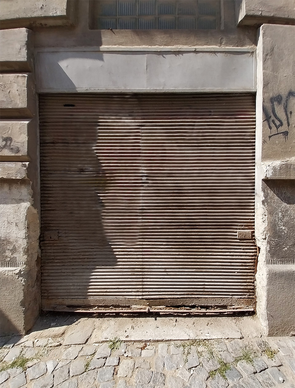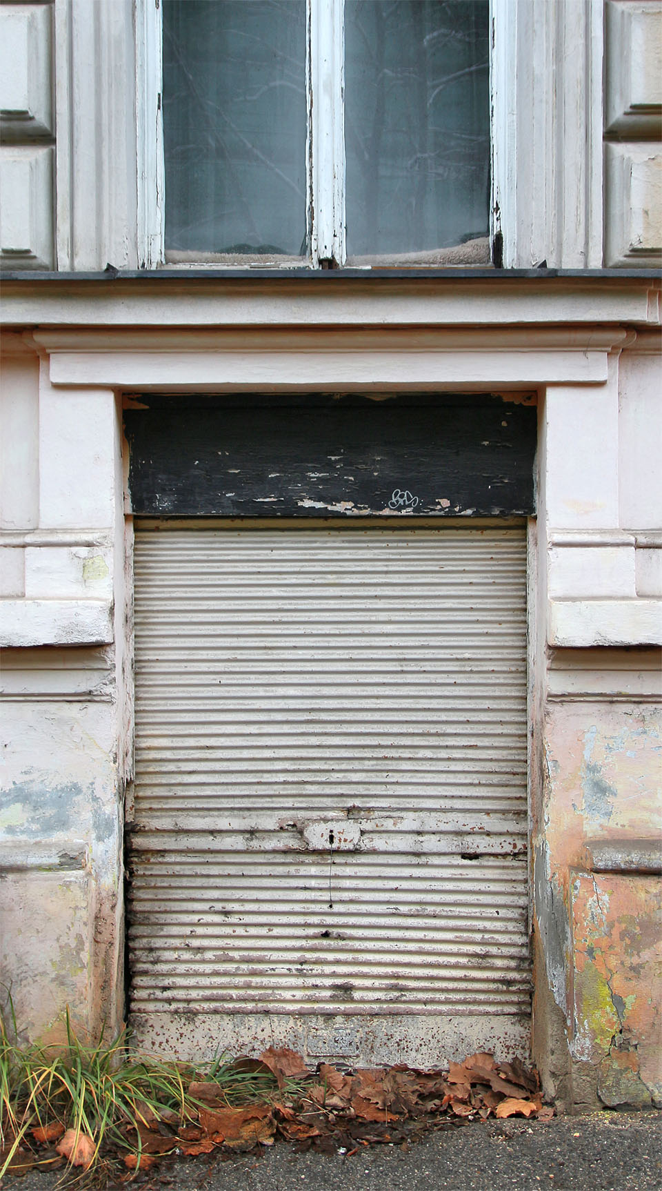 Dvě garážové rolety ve dvoře Dornych 31 v BrněDvojice zpuchřelých rolet z nichž nejméně ta rezavější byla vyrobena firmou Ergon Brno, se ukrývá ve dvoře opuštěného domu na adrese Dornych 31 v Brně. Rolety kryly garáže postavené na břehu romantického Svrateckého náhonu.28. 11. 2025