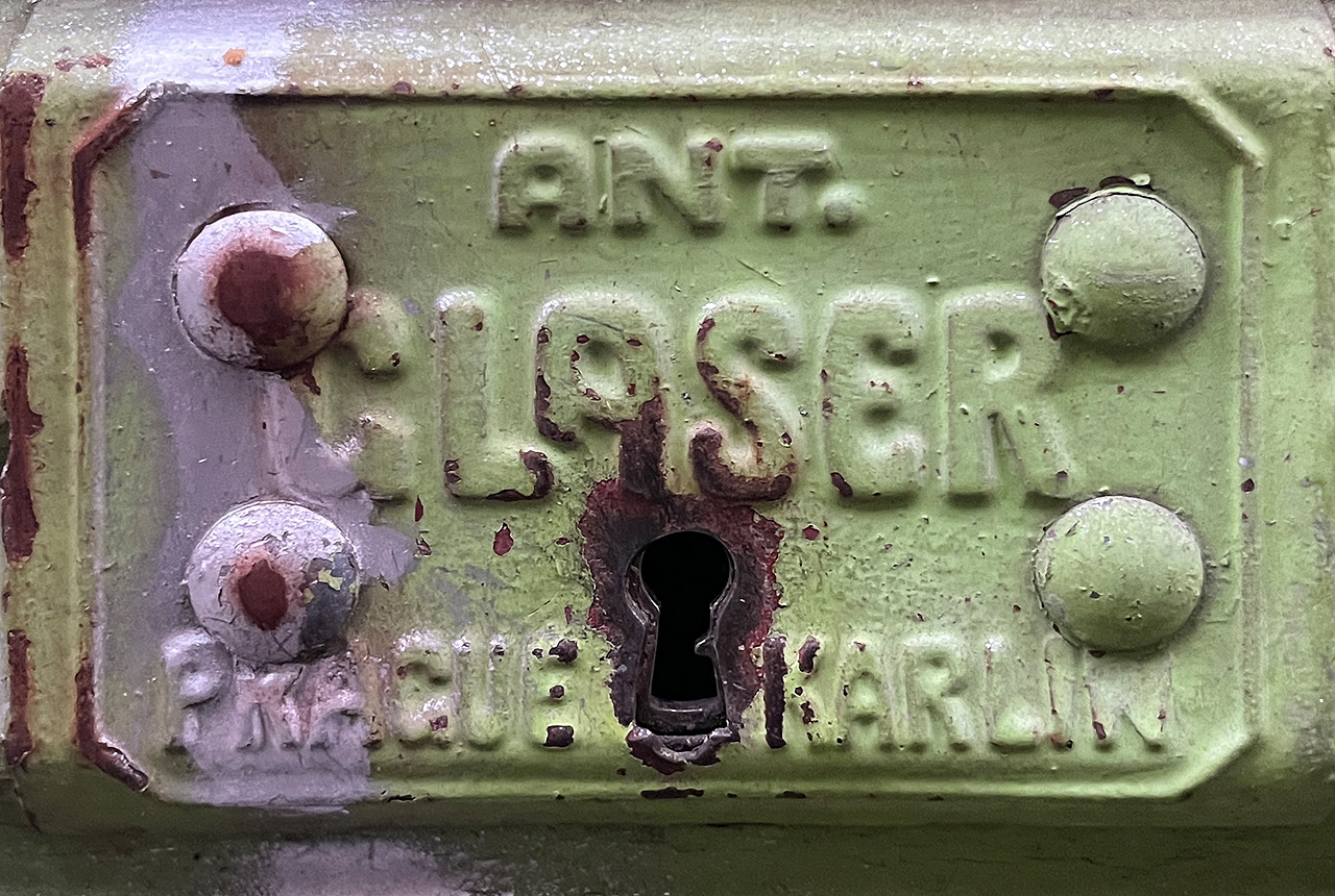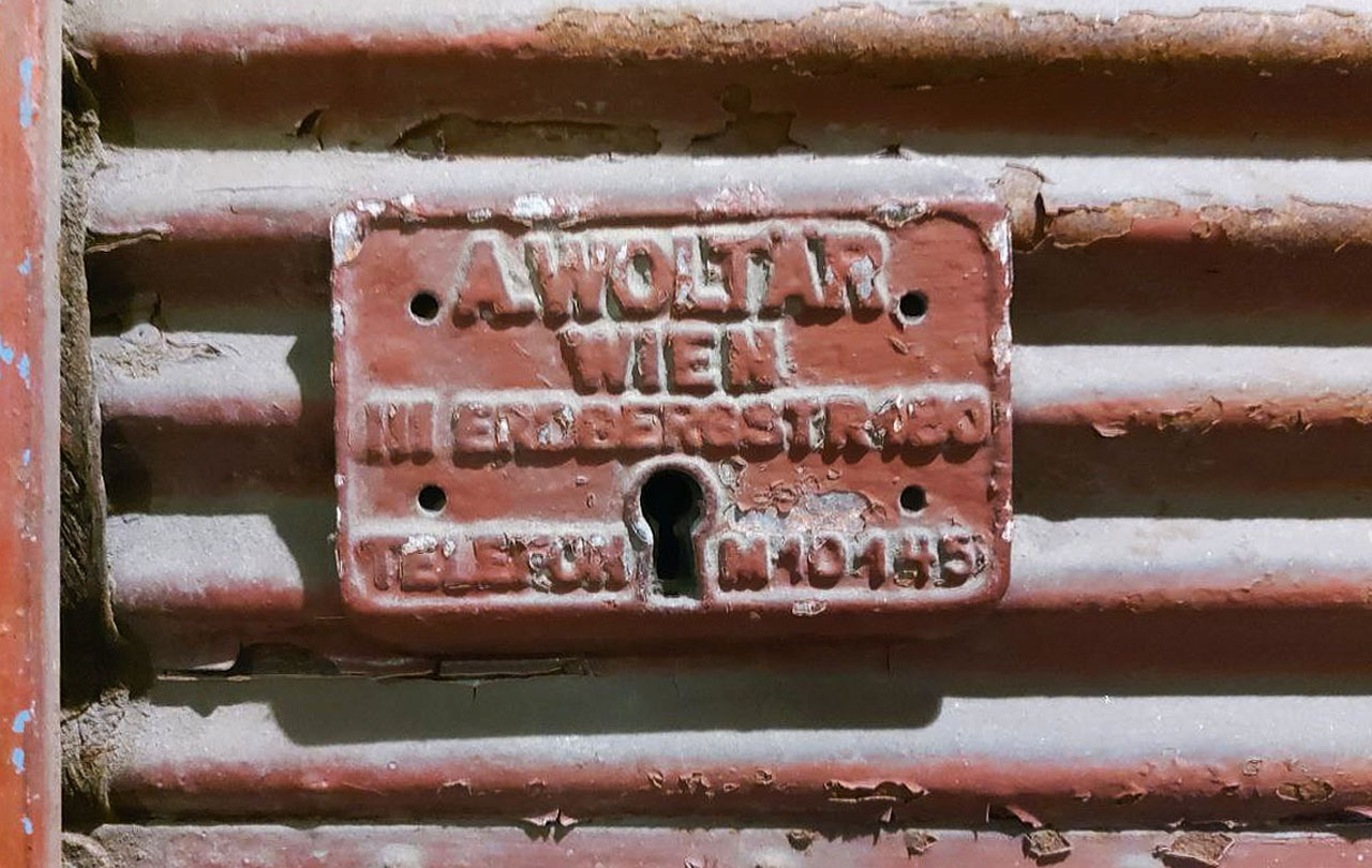 Farní roleta v Lávě nad DyjíRoleta s poničenými štítky zámků, které znemožňují identifikovat výrobce, se nachází v malém domku na Pfargasse v Laa an der Thaya v Rakousku.5. 6. 2025