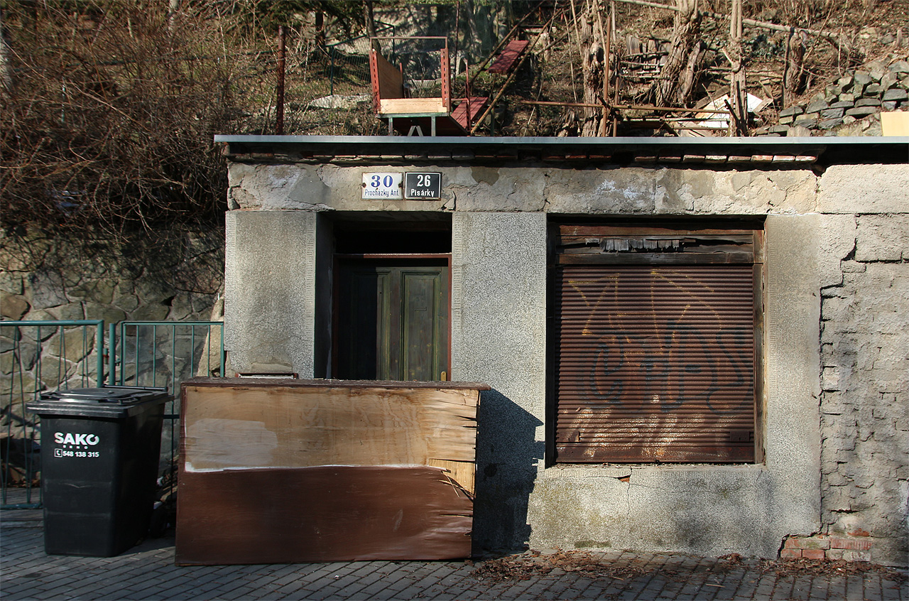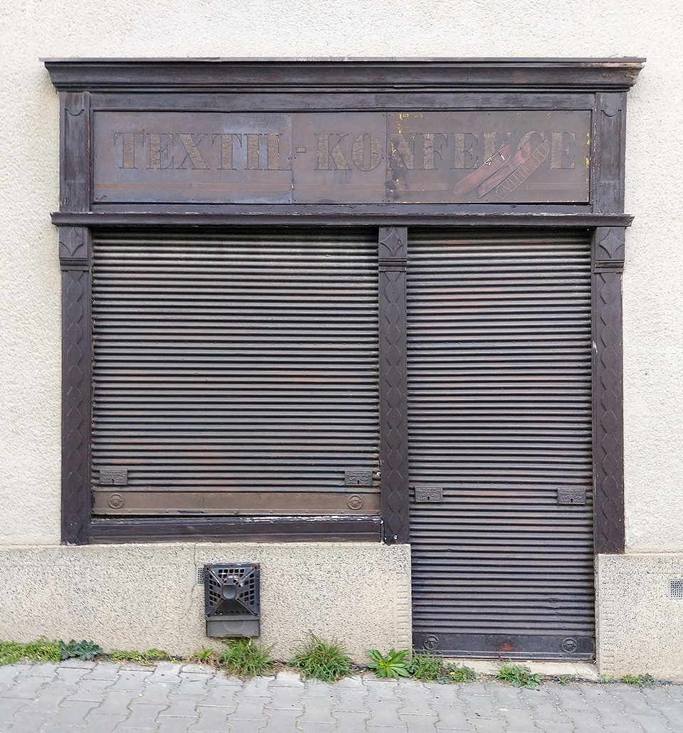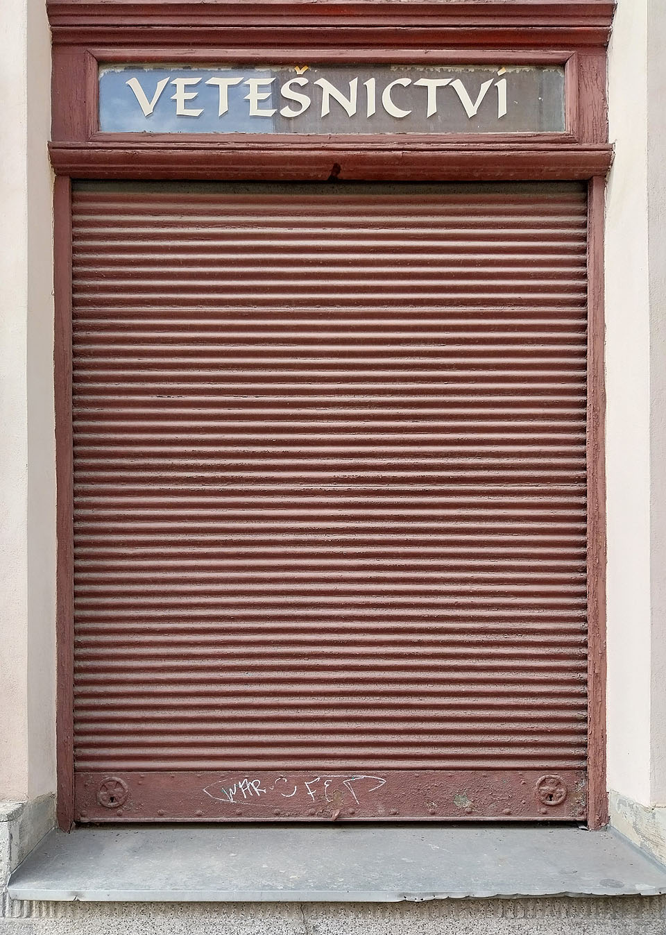 Nádražní roleta č. 2 v IvanovicíchZachovalá šedá roleta je radostným doplňkem v pusté ulici. Nad roletou je napsáno Textil-konfekce, což je zřejmě název obchodu, který zde dříve působil.16. 3. 2025