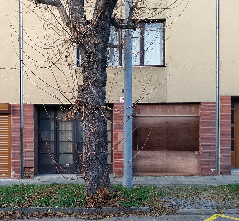 Osamělá roleta na rohu Kaleckého a GajdošovySmutná poslední roleta v předzahrádce domu na Kaleckého ulici blíže Gajdošově hledí do větvoví letitého ořešáku.1. 12. 2024