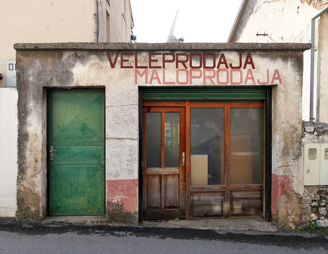Roleta Braće Šarića č. 39 v MostaruOmšelá roleta kryje malo- i velko-obchodní prodejnu ve strmé uličce Braće Šarića na úbočí kopce Velika Kosa v Bosně.20. 4. 2025