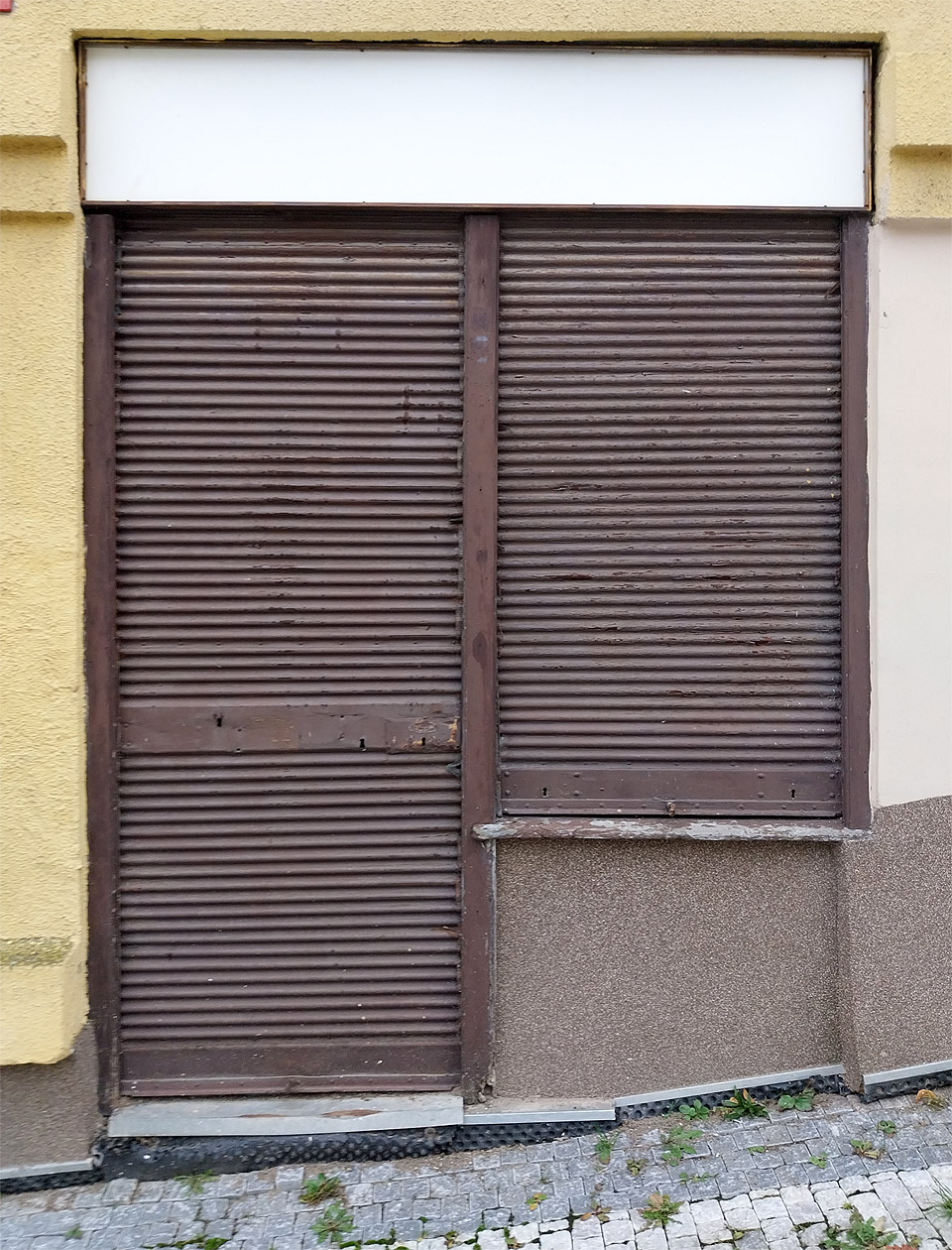 Jeruzalémské rolety č. 13 v PrazeNa domě v pražské Jeruzalémské ulici č. 13 se nachází tři rolety kryjící vstup do antikvariátu a přilehlého salónu.28. 1. 2025