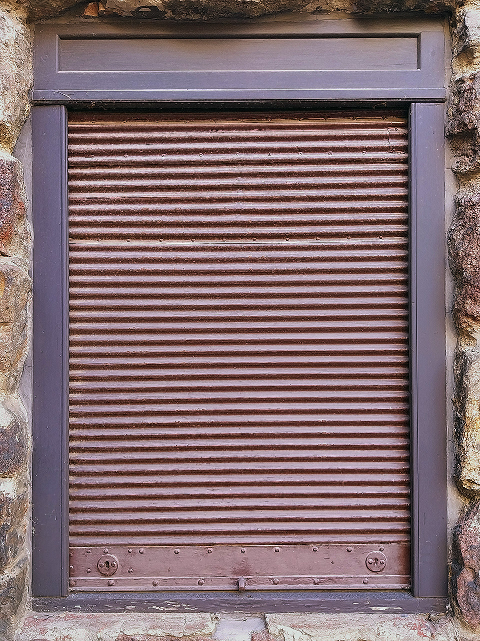 Malá roleta na Rokycanově 53 v BrněNavzdory opravě fasády po roce 2010 zůstala v přízemí domku na Rokycanově ulici malá roleta kryjící zřejmě vchod do suterénu.2. 9. 2024
