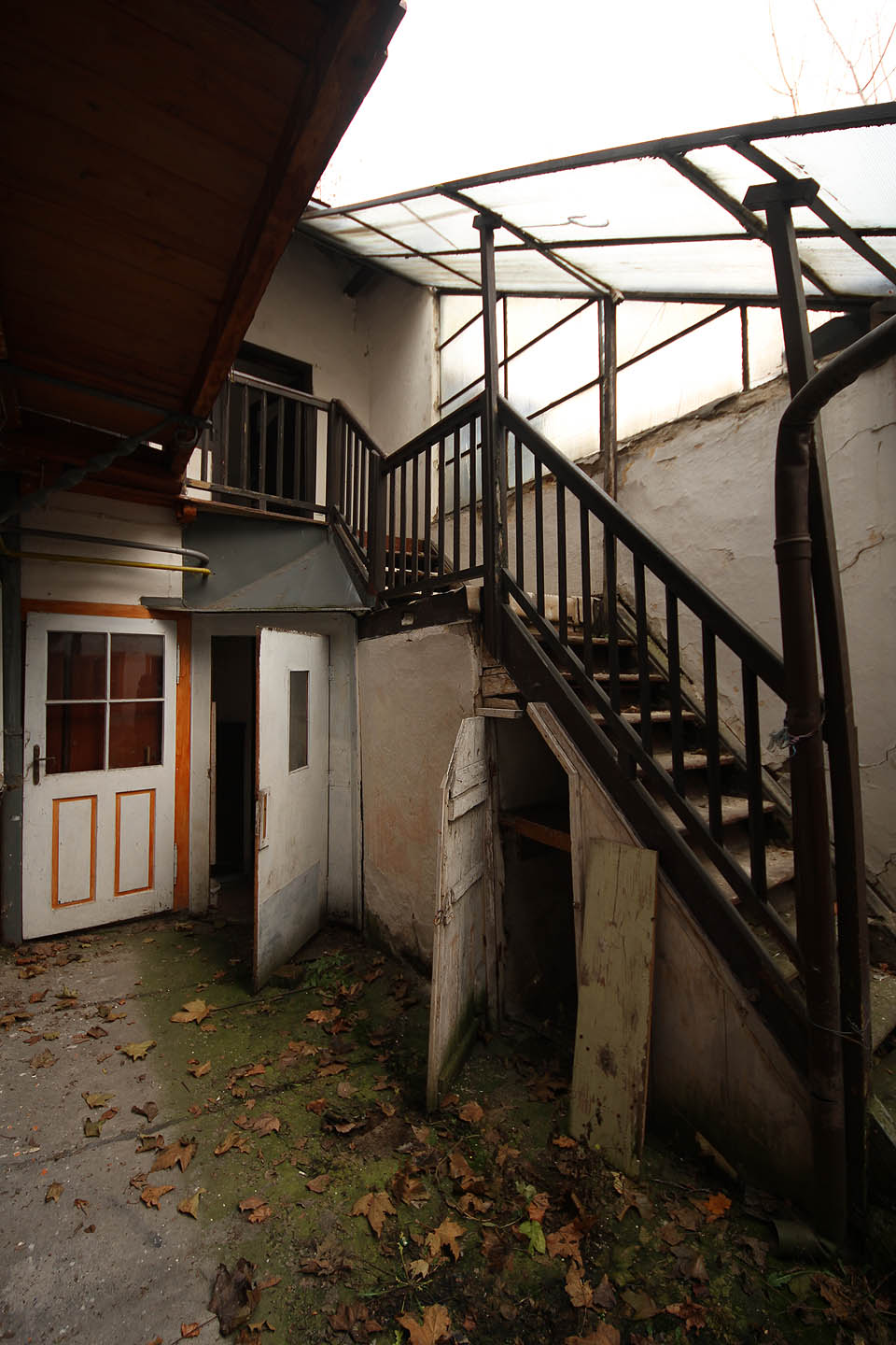 |  | | Jako jediným disponuje dům č. 71 pavlačí, ke které vedou strmé schůdky se střechou z drátoskla. Jeho dvorek působí správně maloměstským dojmem. |