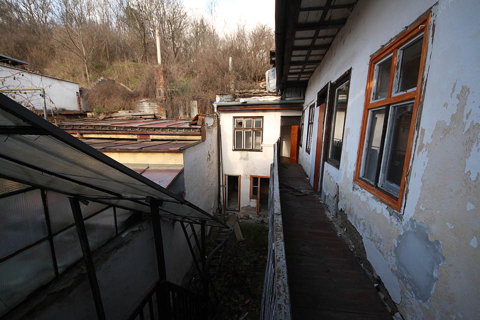 |  | | Kamenná zeď předzahrádky kdysi spadla do úzké Královpolské uličky, která se šplhala vzhůru do kopce ke Staré Tišnovce. |