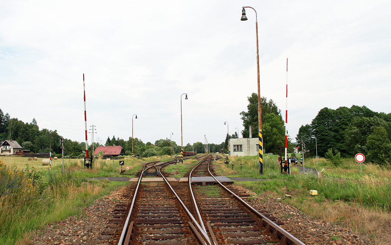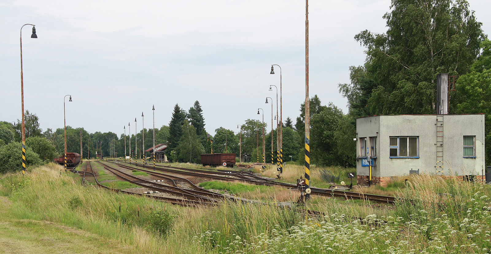| | Pohled na kolejiště stanice Rybniště ve vrcholícím létě roku 2015. |
