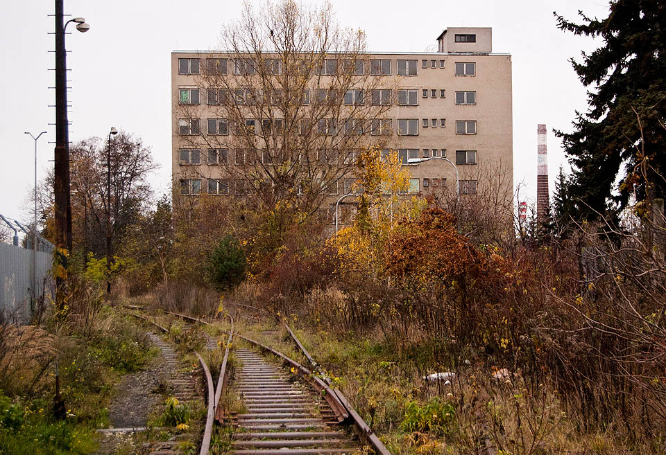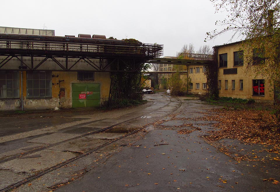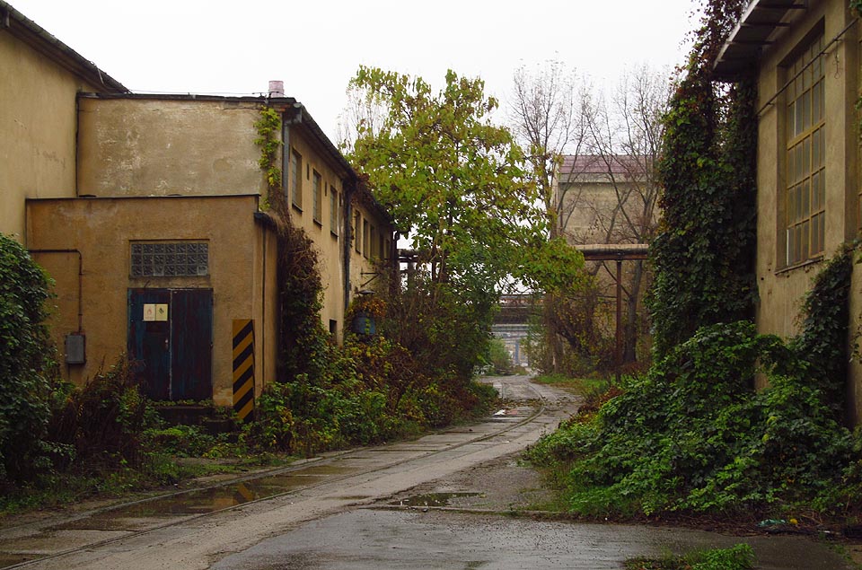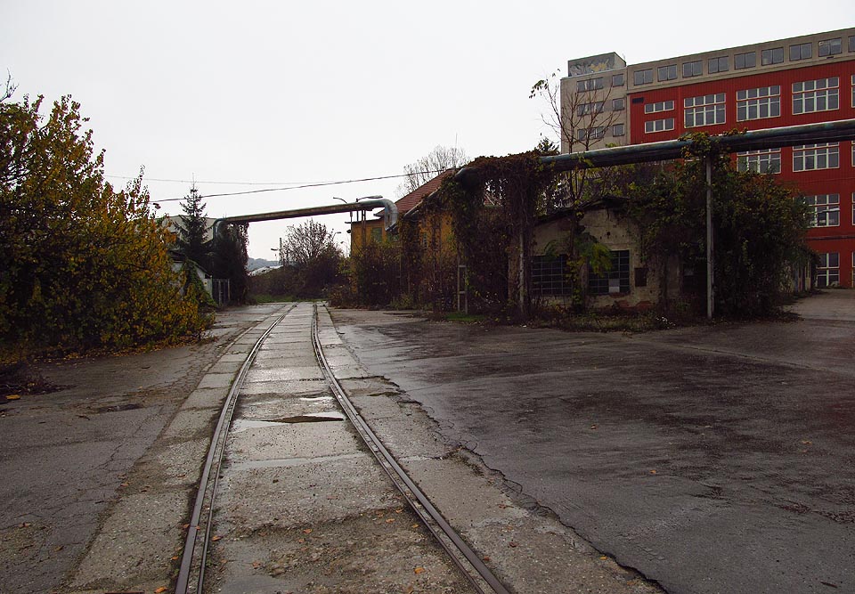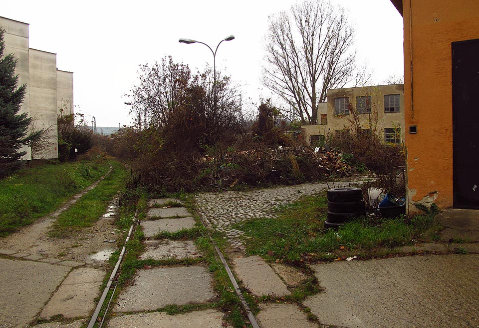 | | Vlečka prochází areálem Zbrojovky od severu až téměř k hlavní bráně. |