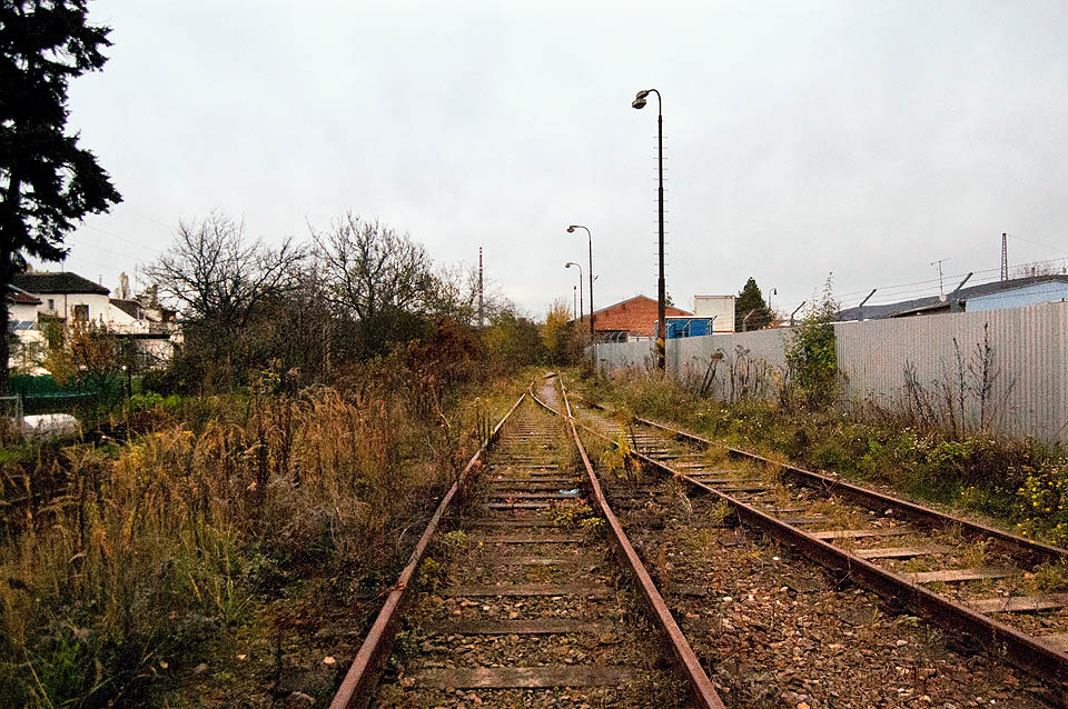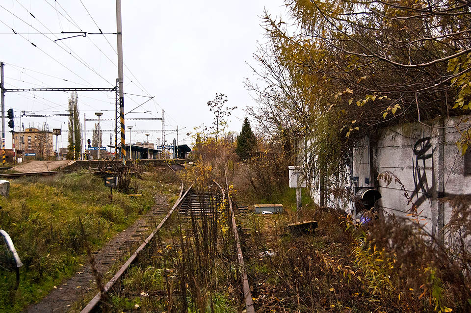 |  | | Za nejjižnější kusou kolejí vlečky již vykukují věžičky židenického kláštera na Zábrdovické ulici. |